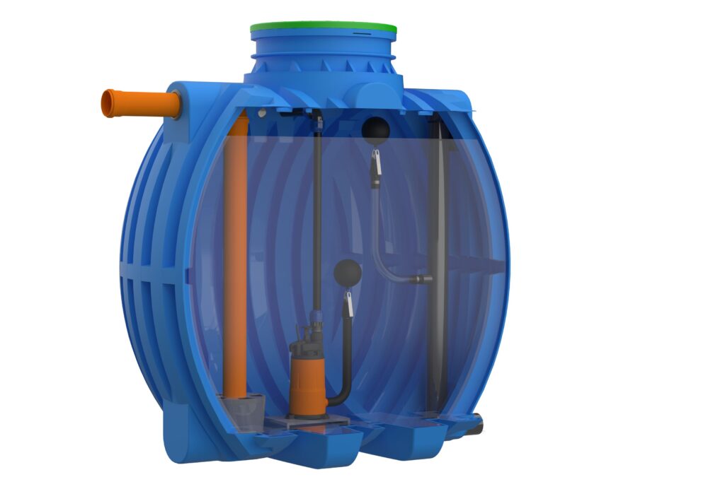 The retention tank set with floating intake and flow control regulator enables precise controlled discharge of water from the tank. Excess water is directed into the drainage system through the regulator ensuring a stable flow.